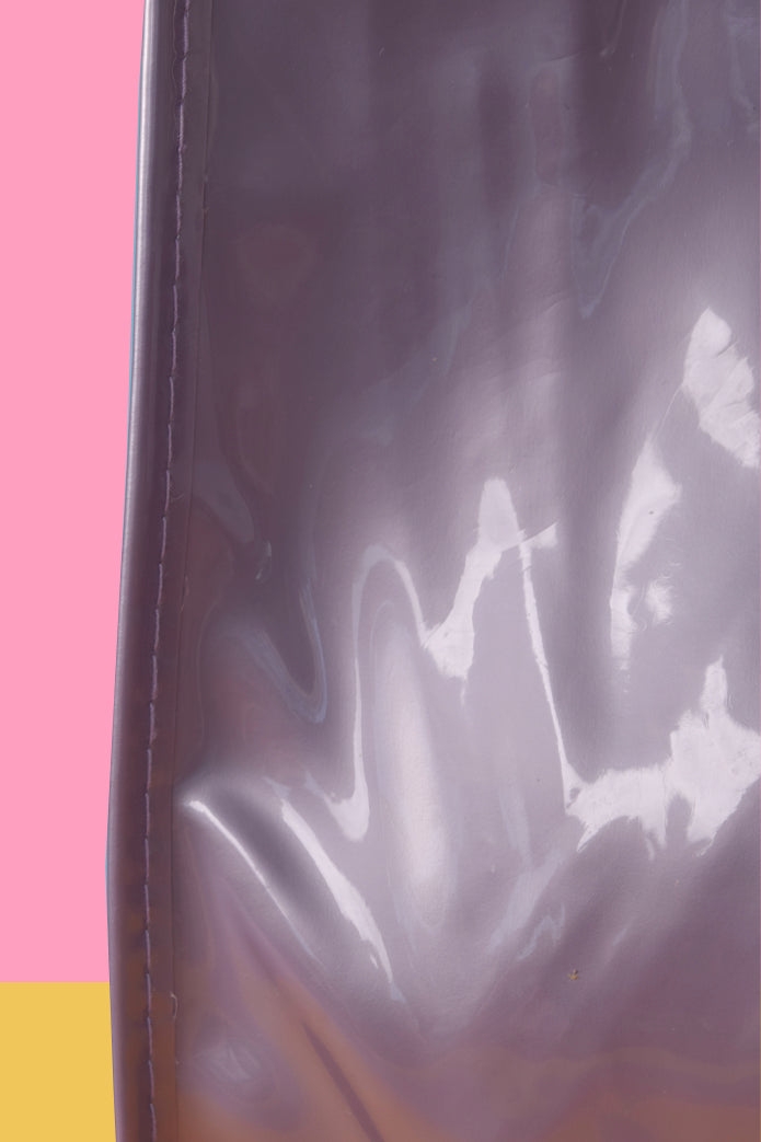 Paging all 90s lovers! This pretty greyish – lilac metallic shiny tote is AMAZING! Snap button closure.