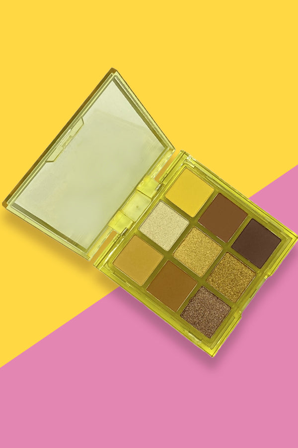 9 pan palettes, mix of matte and shimmer finishes with bright,