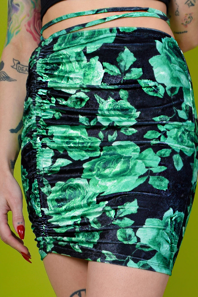 Super cute stretch velvet adjustable skirt in such a fun color way!