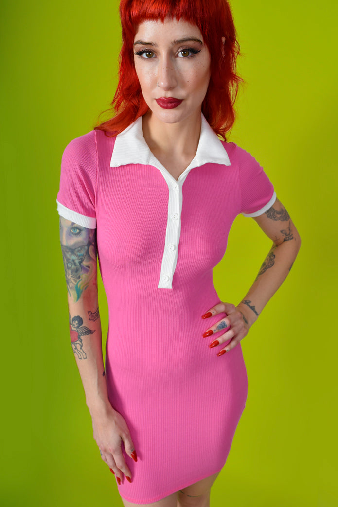 Such a cute 60s style dress with fully functioning front buttons! Made with stretchy fabric for an easy fit!