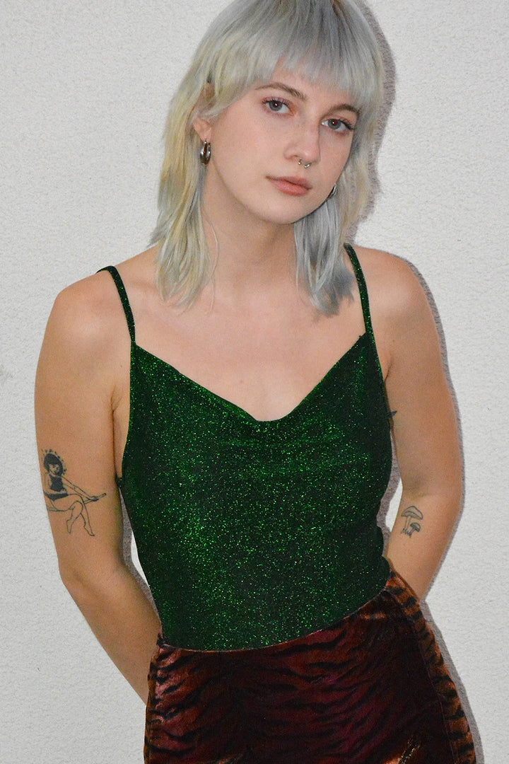 Cowl neck metallic sparkle & shine bodysuit!