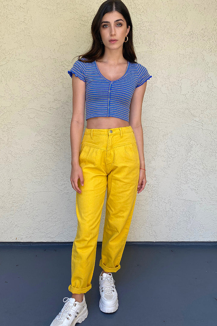 *Waist: 26″ / Rise: 13″ / *Hips: 46″ / Inseam: 28″