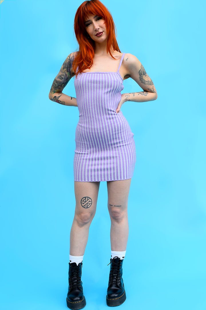 This perfect 70s does 90s two tone spaghetti strap ribbed dress!