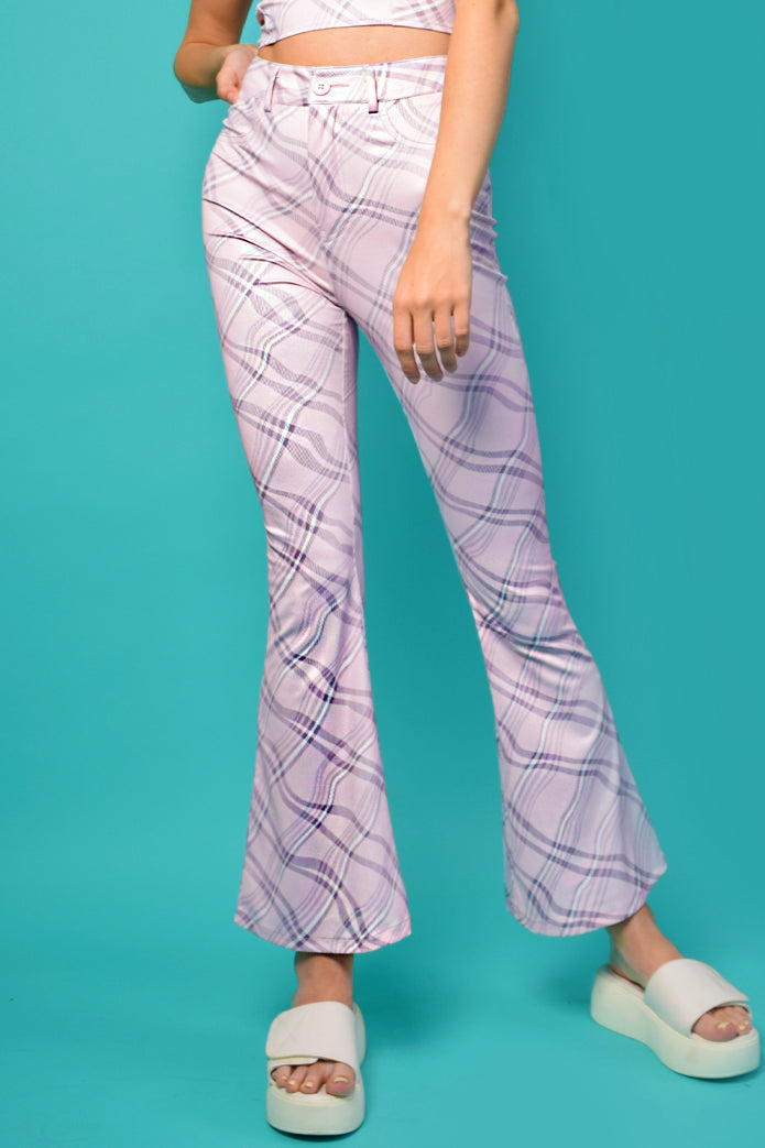 Pair with our Retrograde Swirl Plaid Printed Tie Back Top