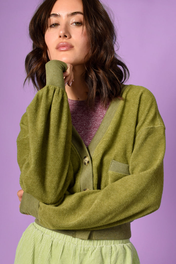 Love the slight fuzz on this perfect button up cardi! And this color!!