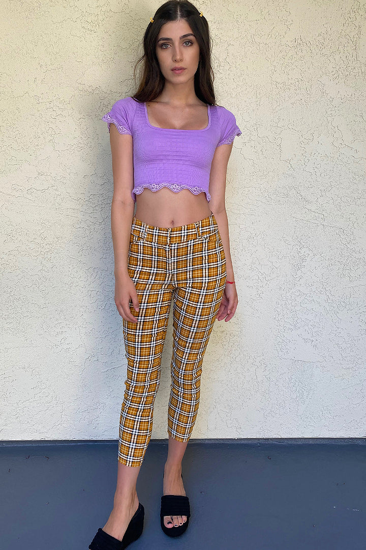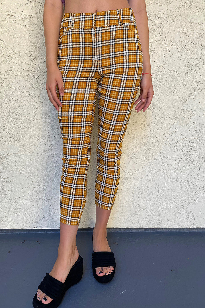 Super cute perfectly cropped skinny plaid pants.