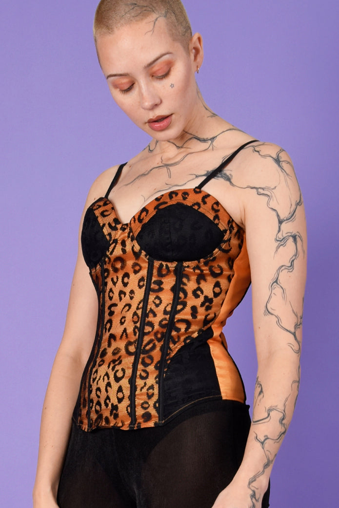Get yr 90s on with this corset tank! Features underwire bra, hook & eye back closure and some stretch for the perf fit.