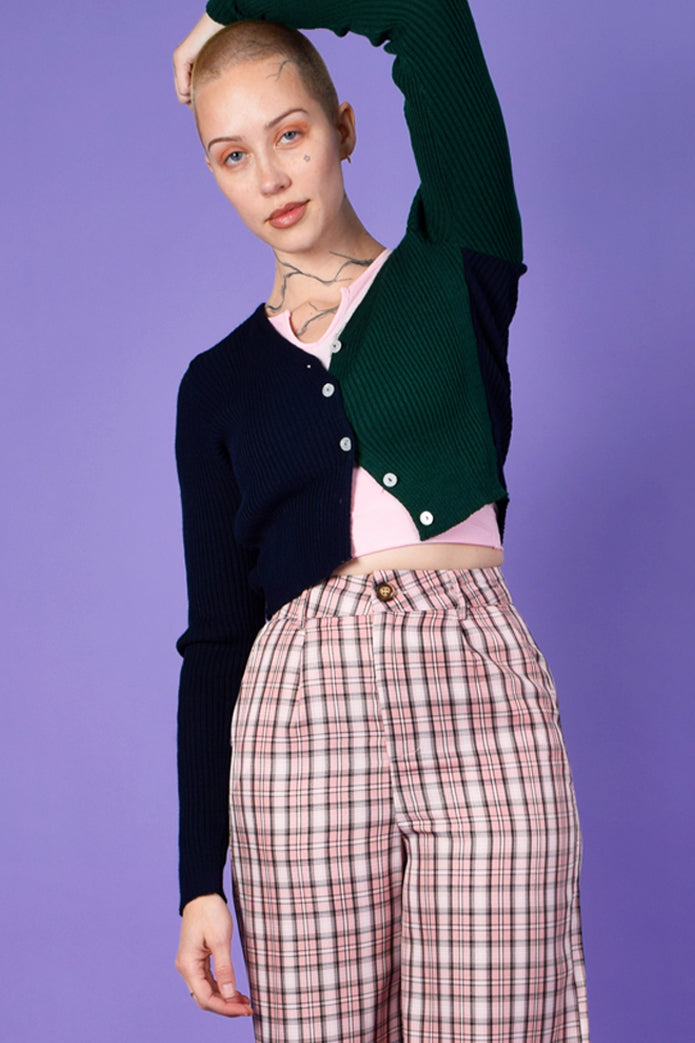Long sleeve knit cropped cardigan with front buttons and dual sides!