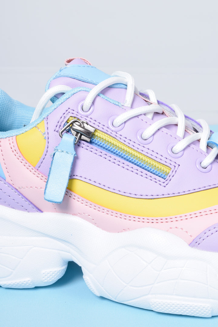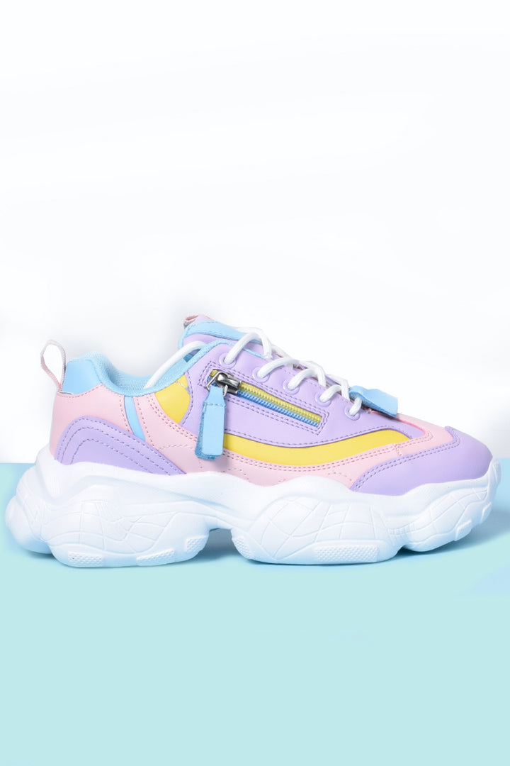Perfect 90s retro vibe sneakers featuring a collection of cute colors and a side zip!