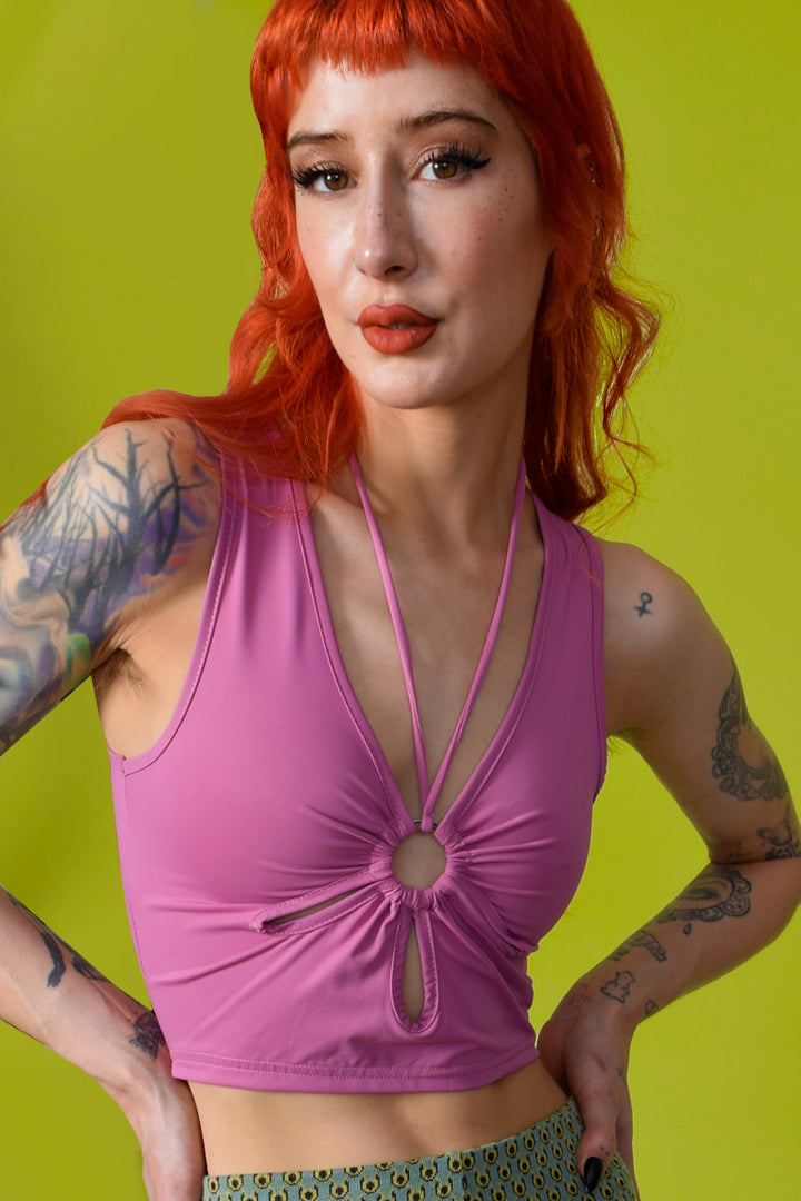 Love the hue of this 90s/Y2K inspired top! Pair with a simple printed bottom for a park perfect outfit.