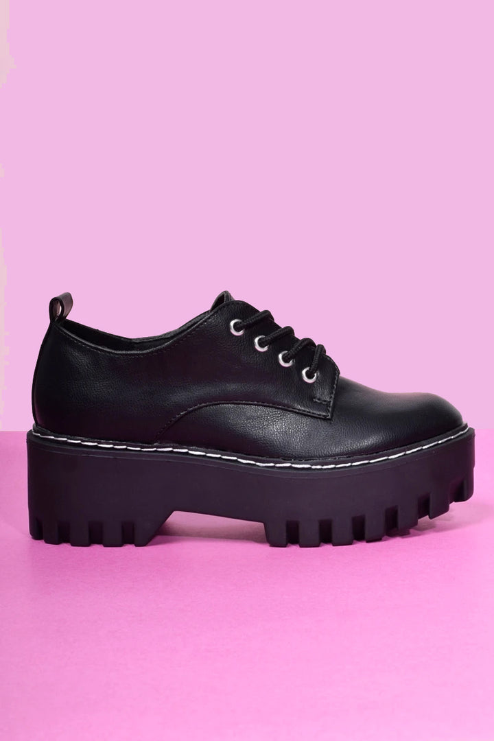 Platform chunky low boots with heel and contrast stitching!