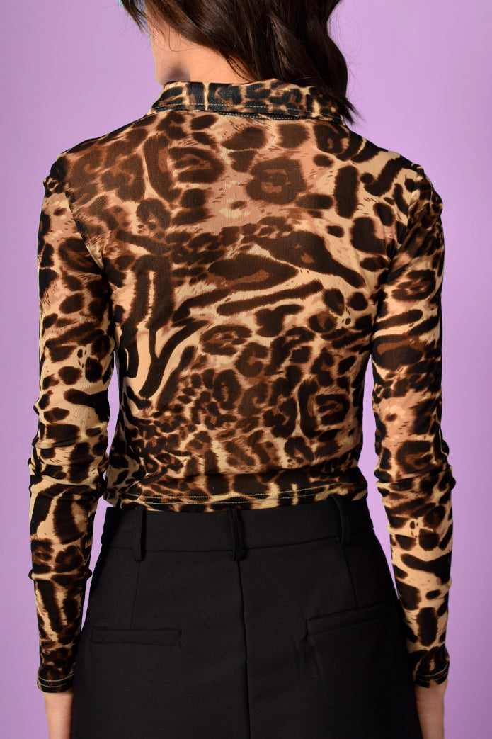 Grrrrrr! Snap button collared top- get this wild look.
